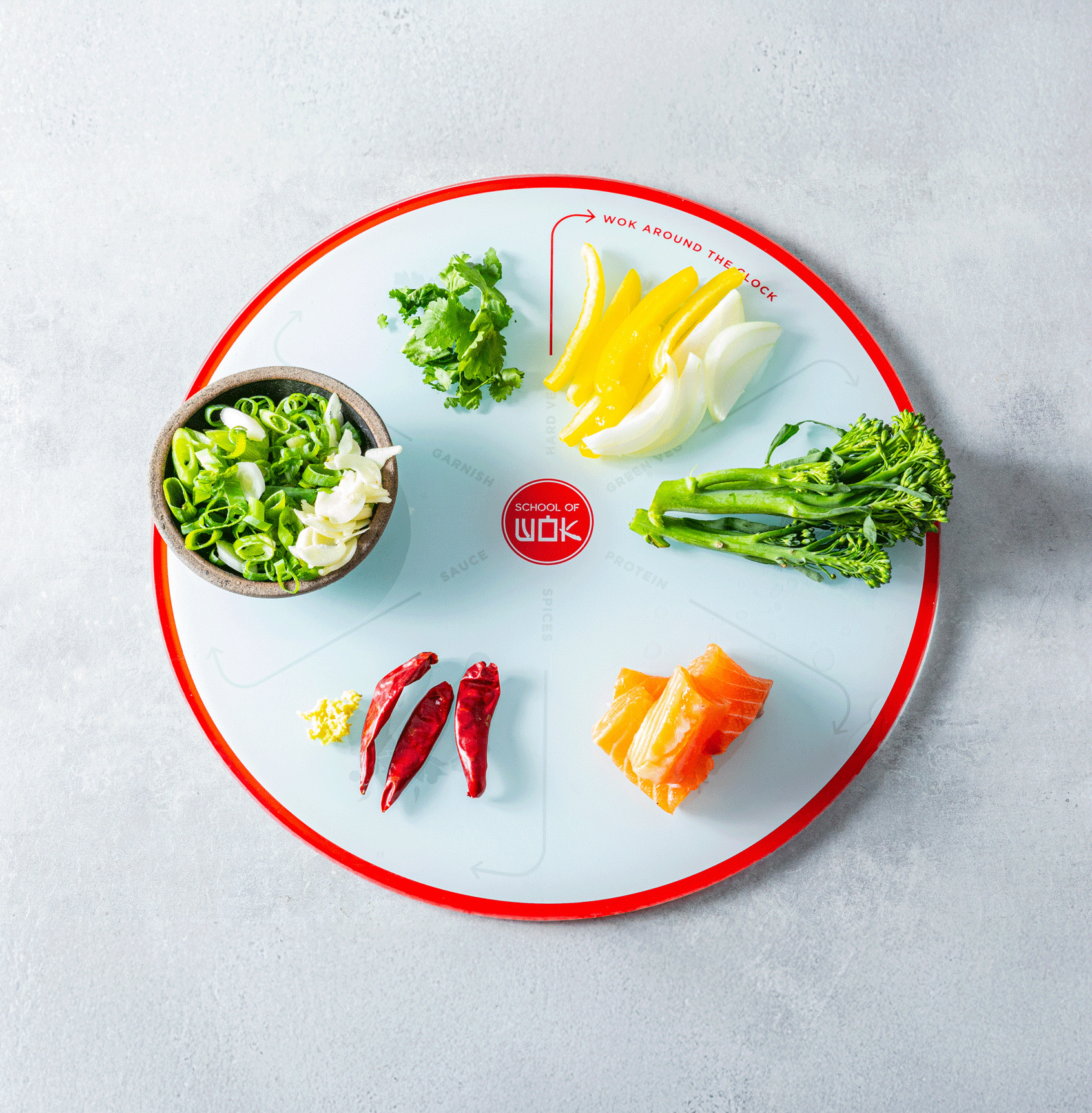 The perfect tool for stress-free stir-frying. This tempered glass helps you prepare and cook your ingredients in the correct order to simplify any recipe! First, prepare your ingredients and place them on the wok clock as per the illustrations. Start at 12 o’clock and work your way clockwise around the clock following the timings of your stir fry or other wok recipes. Master stir-frying like a pro with the WokClock. Say goodbye to cooking chaos and hello to perfect recipes every time! With a value of £14 this, WokClock will be yours for free when booking a class or buying a gift voucher.