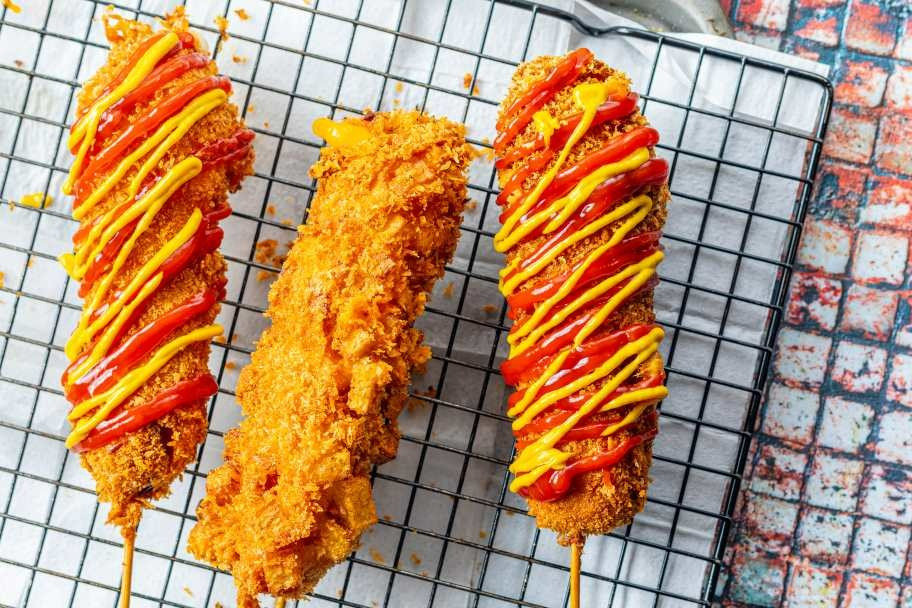 Learn how to make delicious and crispy Korean corn dogs at home with this easy and quick recipe! With a crispy exterior and a gooey interior, these cheesy corn dogs are perfect for satisfying your snack cravings. Follow along and impress your friends with this trendy Korean street food snack!