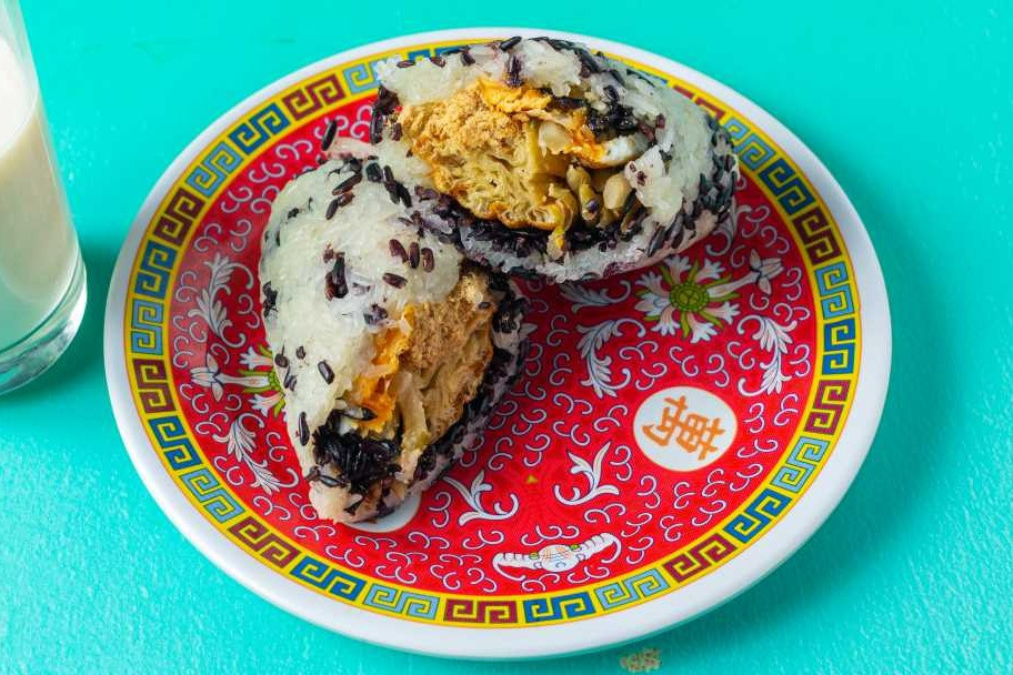 A comforting breakfast dish stuffed with shredded pork, pickled veggies and fried dough