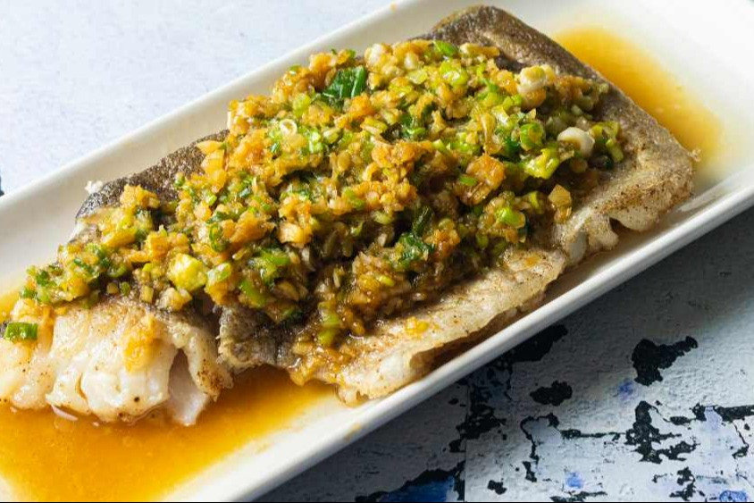 Beautifully delicate Cod with crispy skin, topped with an aromatic savoury sauce.