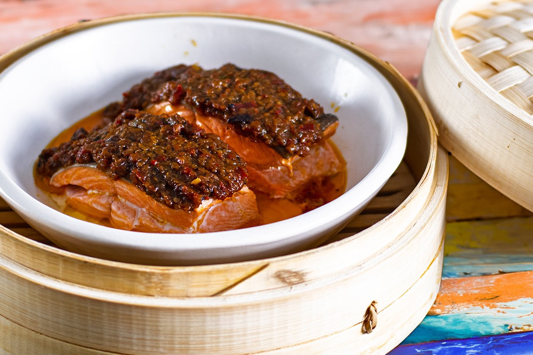 A super easy, perfectly spiced and succulent steamed salmon recipe, perfect for a midweek meal - this is Nonya Steamed Fish!