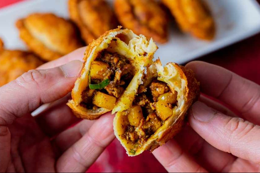 Super flaky homemade pastry stuffed with a fragrant curried potato and chicken filling