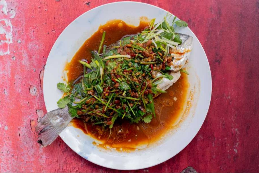 Many of us love the thought of cooking an entire fish, but are put off as the process looks too complex - but this recipe (all prepared in the wok!) shows just how easy it can be.