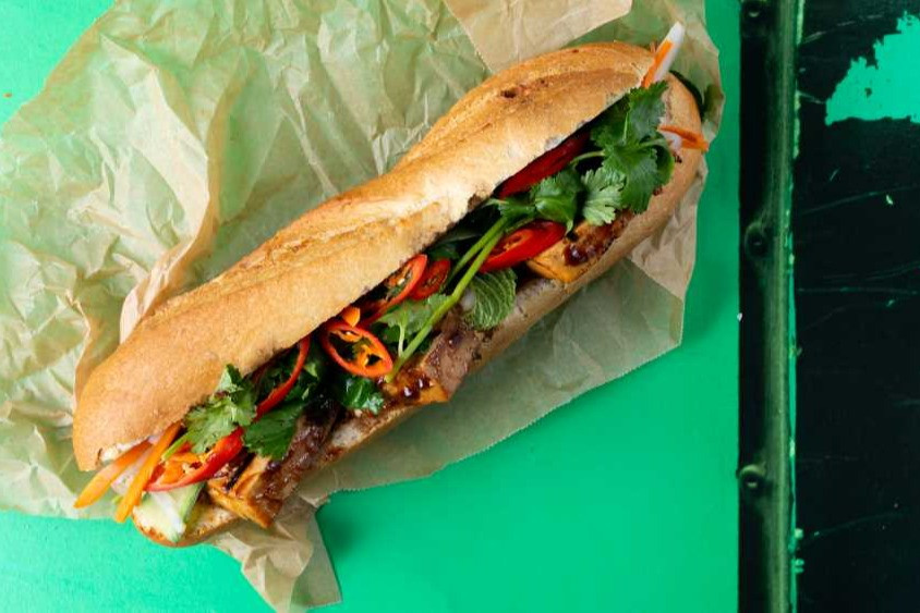 Tofu slices, marinated in char siu sauce, pickles and a dash of maggi sauce. This Banh Mi gives you a different layer of flavour on every bite.