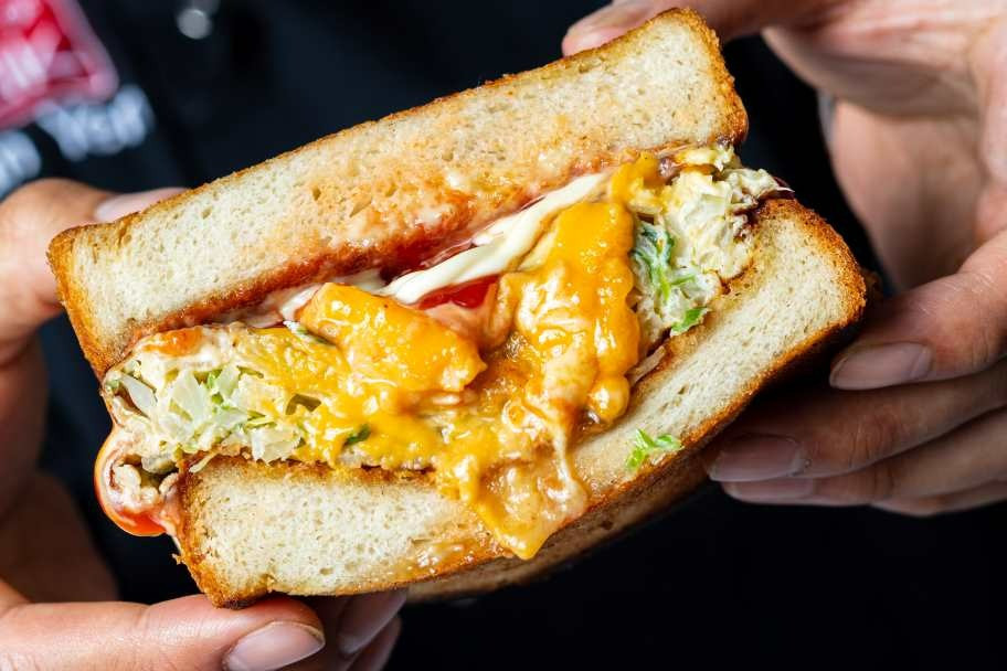 Fluffy Japanese bread, filled with delicious deep fried Katsu chicken, tonkatsu sauce and kewpie mayo. What's not to love?