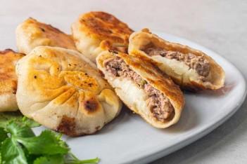 Crispy pan fried pork buns with a deliciously savoury filling