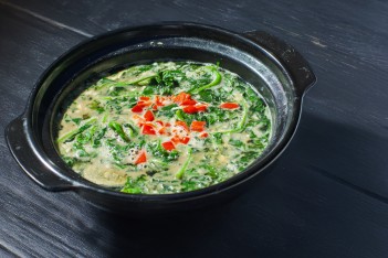 A warming, umami-rich Cantonese-style soup packed with earthy greens and creamy, savoury egg.