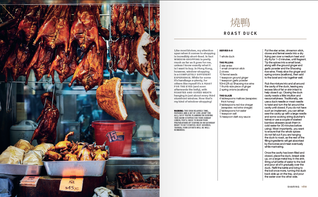 The book contains over 70 recipes, from street food dumplings, baos and barbecue snacks through to hotpots, rice pots, noodles, desserts and drinks. Recipes include Porkchop Crusty Roll, Black Pepper Glazed Short Rib Bao, Celery and Mushroom Dumplings, Roast Duck, the traditional Macaroni Soup with Spam and Egg, plus Hong Kong Milk Tea and Steamed Custard Buns to finish!