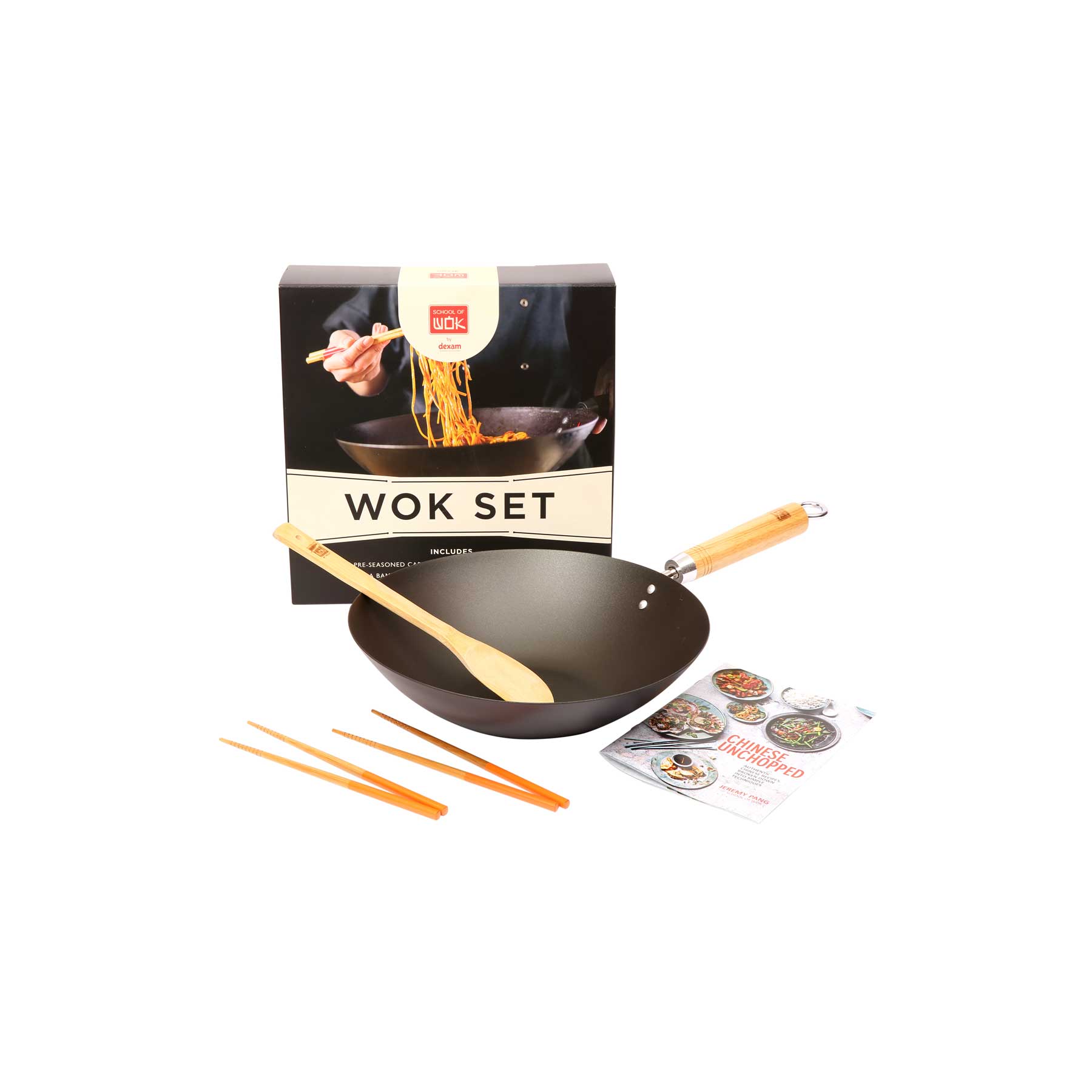 Unleash your inner Wok Star with our Ultimate Wok Set! Featuring a 12″ Carbon Steel Pre-Seasoned Wok, two pairs of chopsticks, a protective Bamboo Spatula, and a Chinese Unchopped Recipe Booklet by Chef Jeremy Pang – this set ensures an authentic and delightful Asian cooking experience at home.
