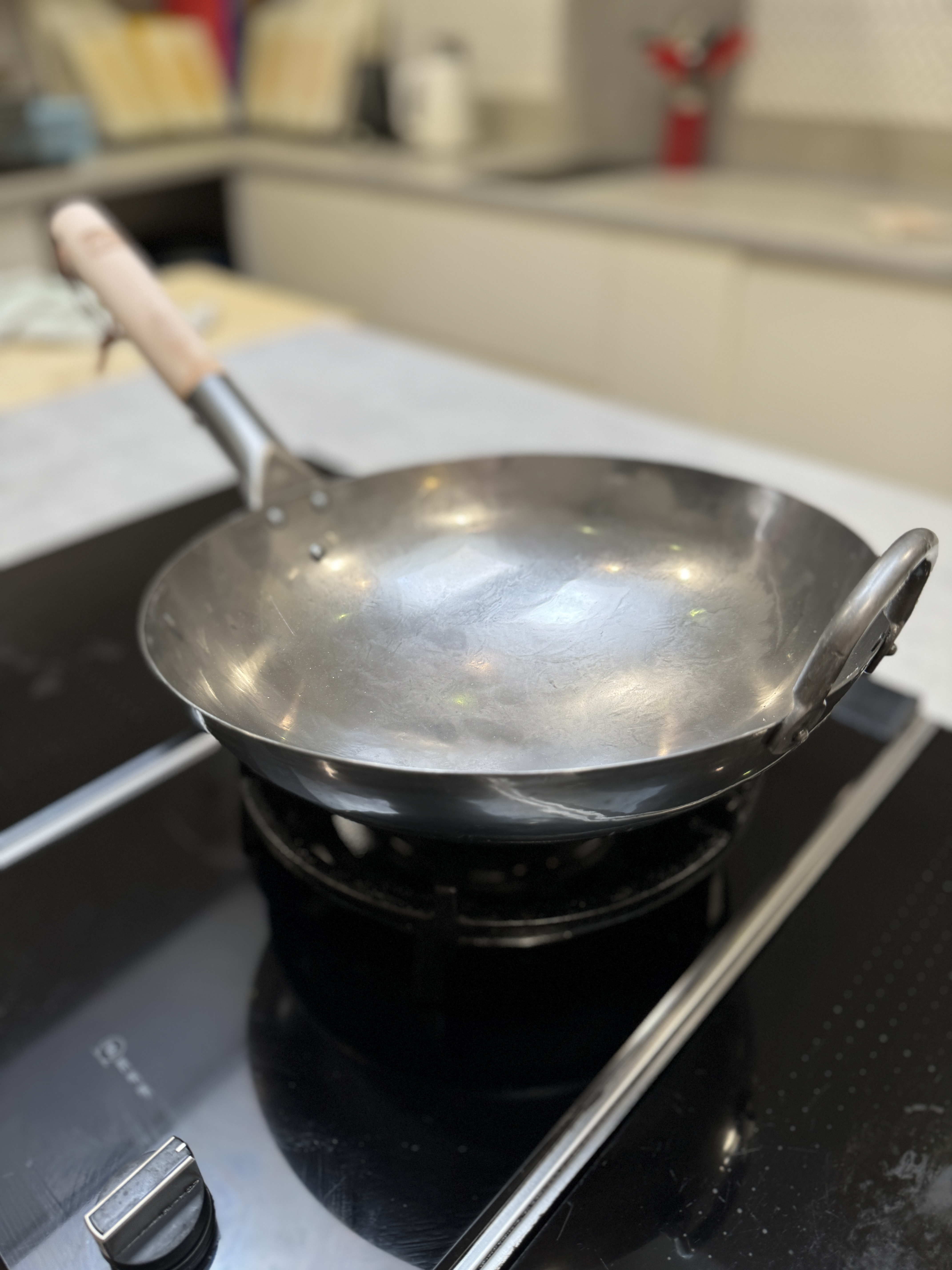 Celebrating the skills of traditional wok makers, our 12”/30cm flat bottom craft wok has been hand hammered with a Chinese traditional cold working technique. This technique has been used for thousands of years and the dimples it produces optimise heat retention and thorough, even heating. The wok is ideal for curries and stir-frying and gives true caramelised flavour. Requires seasoning before first use. Not suitable for use in dishwasher – please dry wok on the hob so it is bone dry before storing, otherwise it will rust. Round bottom suitable for modern hobs with the use of a wok ring.