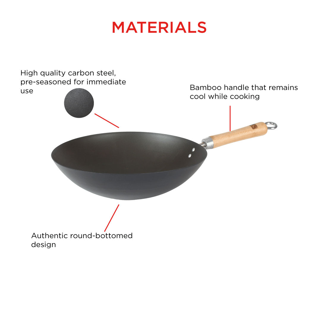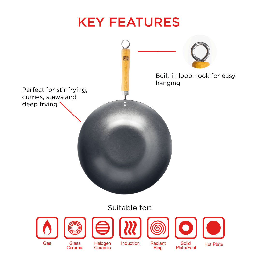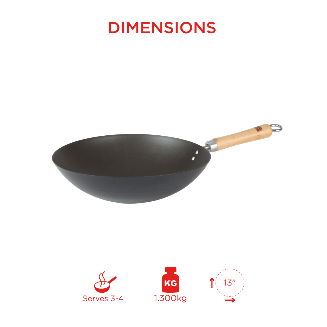 Are you looking for a wok that can handle all your stir-frying needs and give you those delicious smoky aromas? Look no further! Our 13”/33cm Pre-Seasoned Carbon-Steel Wok is the perfect choice for you. This wok is used in traditional Asian cooking and is designed for perfect heat distribution, which means that even gas oven owners can use it with our specially designed wok ring!